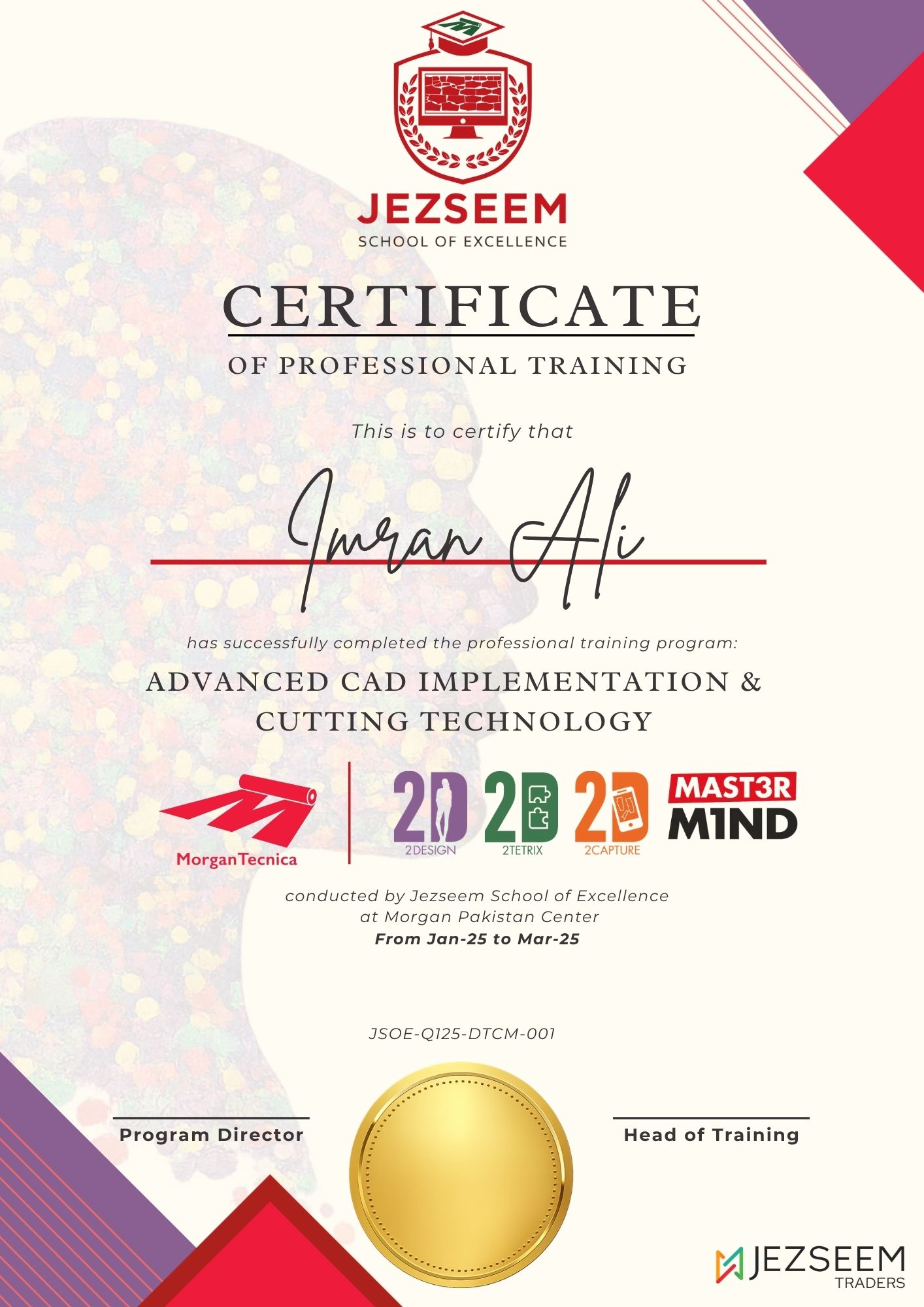 Jezseem Traders provides certified software solutions designed to meet international industry standards in garment pattern design, marker making and cutting room management. Our software certifications ensure reliability, accuracy and consistent performance, giving manufacturers confidence in adopting advanced digital technologies for their production processes.