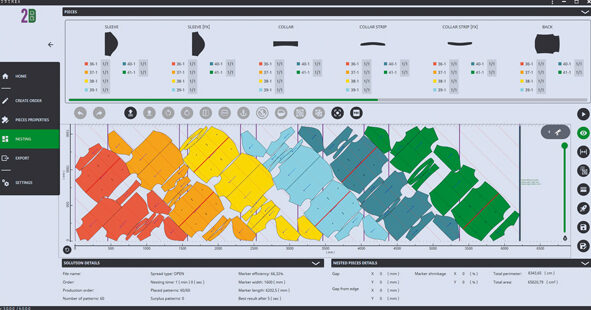 2Tetrix enables garment manufacturers to create highly efficient marker layouts using intelligent nesting algorithms and flexible manual tools.